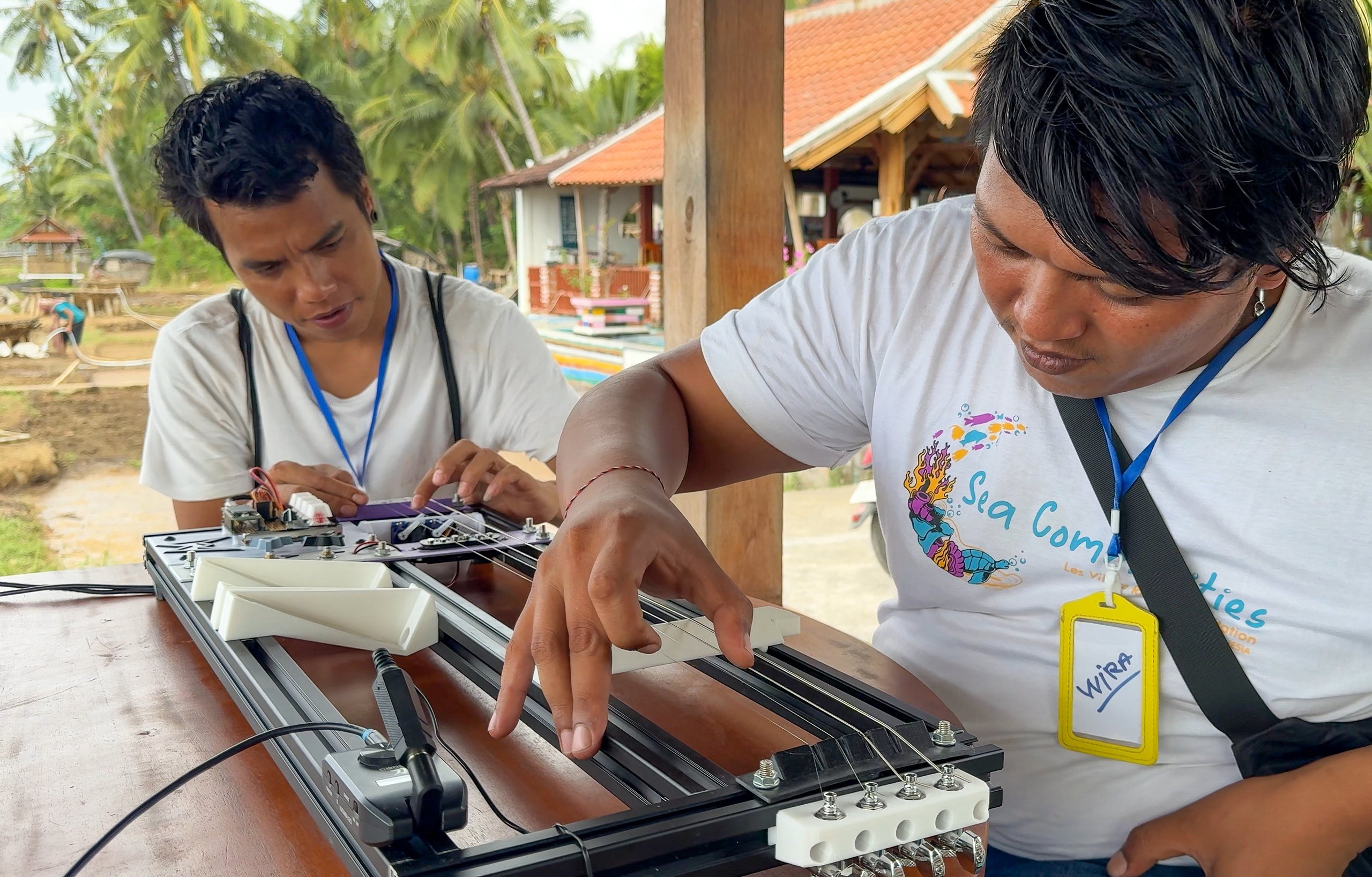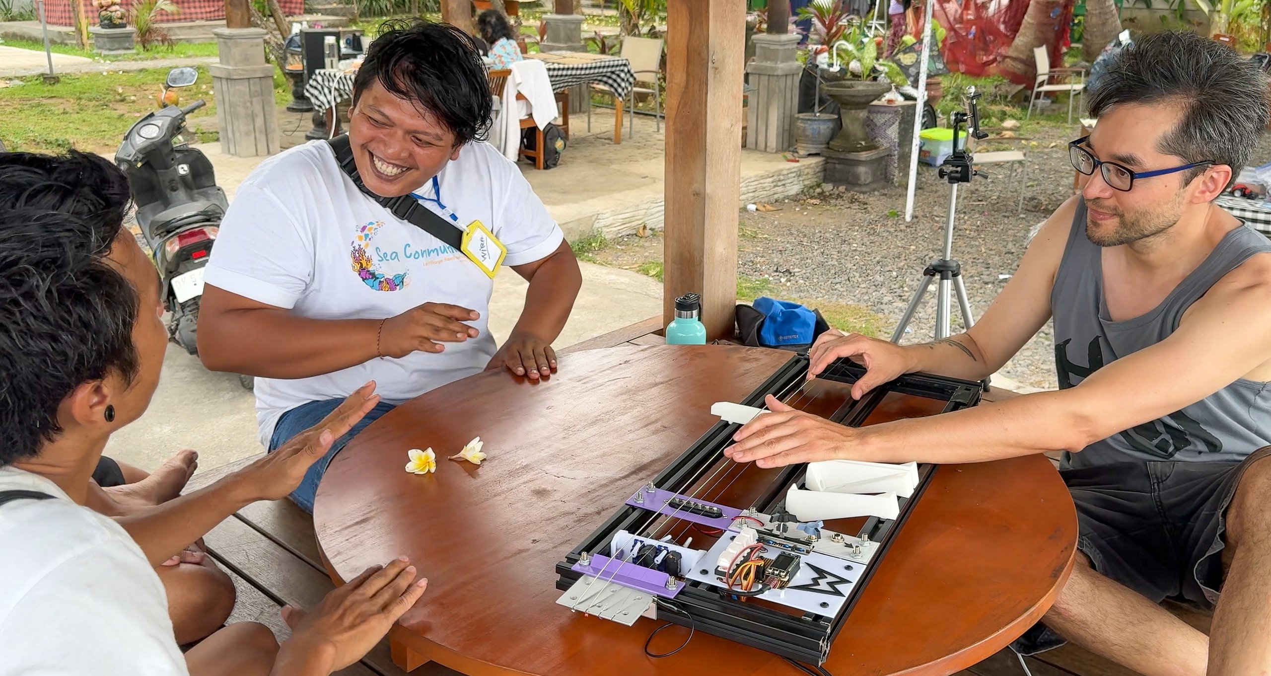 I set up the Magnesynth on a table overlooking the sea, and it wasn’t long before Wira and Wilan started jamming together on it, without any kind of prompting. Magic! The different tones from different parts of the Magnesynth locked together in a relaxed ambient rhythmic groove. Later I joined the jam with smiles all round!